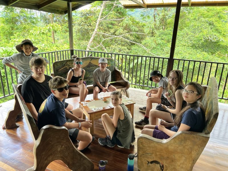 That was the answer that one of our guides gave to the question, “What do you wish more people knew about the Children’s Eternal Rainforest?” He came to Pocosol tonight to lead our group on a night hike through the paths we have walked during the day, but this time the hope was to see some creatures that linger in the dark. However, tonight we learned a valuable lesson; sometimes when plans change, something even better has the opportunity to unfold. Our night hike got cut short because the time between the thunder rumblings and the lightning strikes was just too close together. For safety reasons, we turned around and came back to shelter at the research station only 10 minutes after our hike had begun. So instead, we gathered on the terrace of the dining hall, facing a spectacular lightning show that illuminated the trees and hills. But the real magic was in the stories we heard from Hugo and Isaac, our local guides for the evening. Hugo grew up in this forest, back when it was farmland only 40 short years ago. And Isaac has been guiding here for over 25 years. They both know this place like the back of their hands. So, in the end, we didn’t see all the night crawlers we thought we might, but we got something far greater: a better understanding of why Hugo considers this rainforest the greatest example of a dream come true. If you are one of our parents reading this back in London, remember this blog post and ask about what they learned from Hugo and Isaac on the night of the lightning. If you are reading this from anywhere in the world, take time to learn about how the Children’s Eternal Rainforest came to be and the power of a dream, no matter your age. Tomorrow, we are going to help maintain trails in the forest that were first built almost 40 years ago by Hugo and a group of volunteers from Canada. Seems fitting.