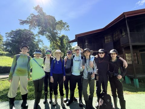 Today started with a beautiful sunrise while we participated in birding before breakfast. During birding, we saw hummingbirds, a Toucan, and, believe it or not, Spider Monkeys! After another delicious breakfast, we got ready for our first hike in the Costa Rican rainforest, with the wonderful flora and fauna, ranging from tiny ferns to towering palms, from small frogs to massive birds. We could hear the sounds of cicadas and the calls of howler monkeys. We saw lots of interesting things, like millions of leaf-cutter ants, a brown vine snake, and a Great Egret. After we arrived back at the research station, we ate lunch, and we spent time with the biologist, Katherine, learning about the animals we saw on our hike. We researched one of the creatures we had seen, and used the scientific method to help us write educated questions. Katherine showed us the three main types of scientific questions: descriptive, comparative and correlative. We ended our day with a great dinner, shout-outs, team-building activities, and journaling. We are excited for another day in Costa Rica tomorrow!